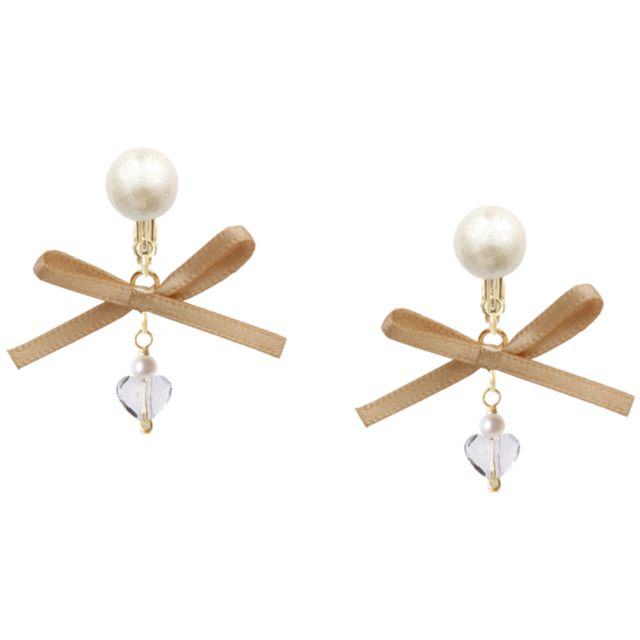 パールリボンイヤリング(ベージュ)